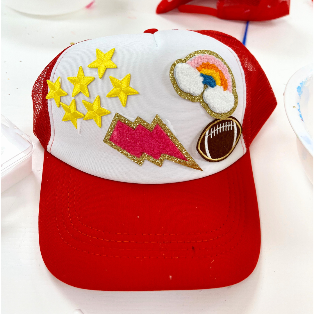 These fun parties are all the rage right now, and we are all in for it!!! Patches galore, so many fun symbols and cute letter, your birthday child will be thrilled! Choose from a variety of surfaces to personalize—all very fun! Trucker Hats, Pencil Pouches/makeup bags, or Fanny Packs! Each one will be as individualized as the creator! Additional gems and flat backed pearls can be added. $30 dollar additional supply fee.