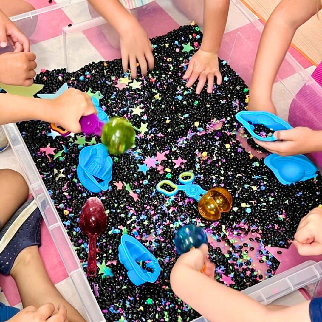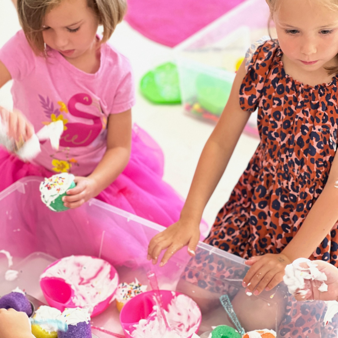 This is the perfect option for our littlest artists! Sensory experiences are so much fun and a favorite of Wee Create! For this theme we will set up a variety of sensory bins for the kids to enjoy as they play at the party. There will also be two table top sensory experiences as well! These can all be set to a specific party theme, or we can use our “Wee Create favorites” for the sensory areas. A large making table with crown making can be added for $30.